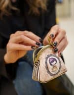 Majhna denarnica zanimive oblike in načina zapiranja iz trdnega materiala