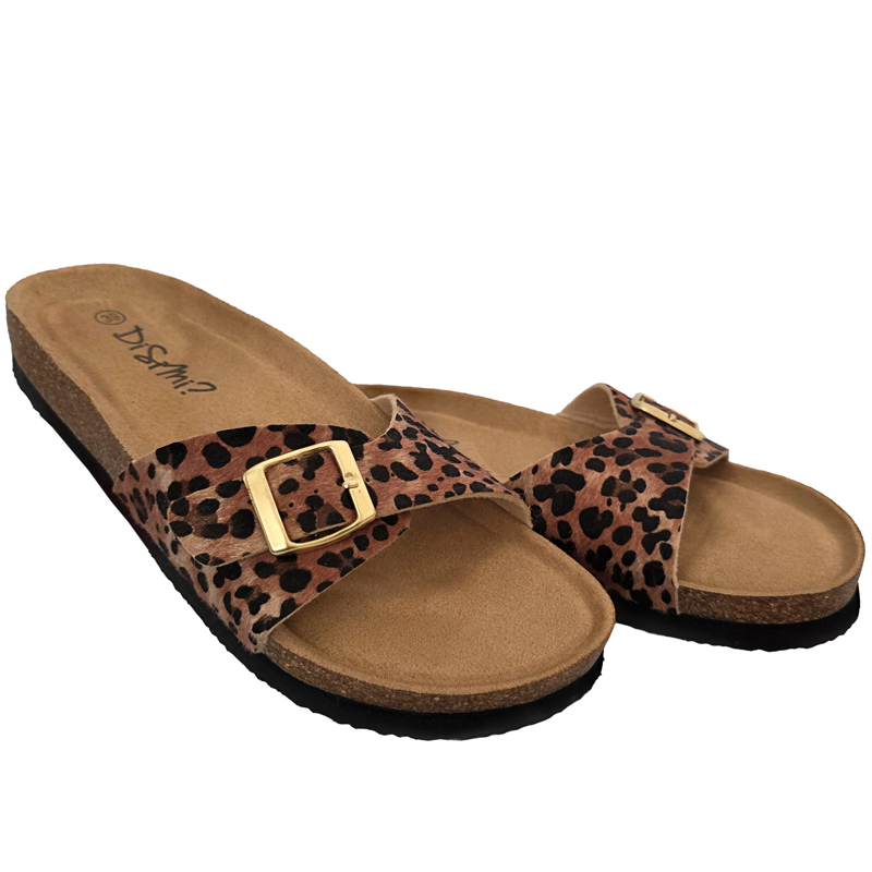 Ob priljubljenih modelih v nevtralnih barvah so za bolj drzne tu natikači z leopardjim vzorcem! Zgornji del je izdelan iz obdelanega eko usnja, pod PU vložkom je plast spominske pene za popolno udobje. Podplat je izdelan iz kombinacije EVA materiala in gume.