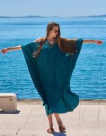 ✔ Izbrani materiali: Materiali, ki tako naravno sledijo liniji telesa in olajšajo nošenje, hkrati pa izpolnjujejo funkcijo oblačil, ki ščitijo pred soncem in izrazit modni slog. Obleka za plažo? Zakaj ne?